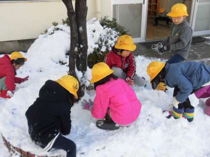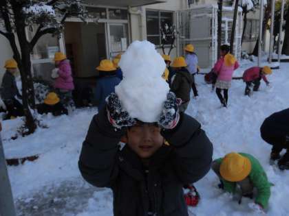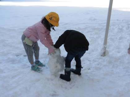雪の冷たさを忘れるくらい、1年生みんなで楽しく雪と遊びました。
