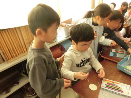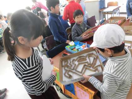 これまでの学びを「交流活動」を通して確かなものにしていきます。子供たちは、友達や仲間に自分の学習や経験を「伝える」ことで、これまでの学びをさらに深めていきます。2年生が1年生におもちゃの作り方を教え、1年生は先生ではない仲間から教わる・・・楽しく、有意義な学習です。