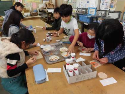 1月24日、クラブ活動が行われました。今日のクラブ活動は、来年クラブ活動に参加する3年生のための見学会が各クラブで行われました。どのクラブも3年生に興味関心をもってほしいと内容を工夫していました。3年生もたくさん入りたいクラブが見つかり、クラブ選択について真剣に悩んでいました。この写真は造形クラブの様子です。今日はタイルコースター作りに取り組んでいました。きれいな作品に3年生も引き込まれました。