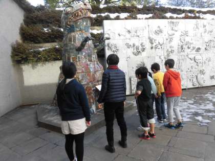 世田谷美術館の中にある図書館の様子も見学しました。外にある大きな作品に触れることもできました。子供たちはたくさんの作品を鑑賞し、もっともっと時間がほしいと感想を伝えていました。時間が足りないと思うほど熱心に作品を見つめる子供たちのことを案内をしてくださった方々がほめてくださいました。「一つの作品にも見方や感じ方がそれぞれあること」や「作者の思いになって鑑賞することを学んだ」とすてきな感想を述べる子もいました。「作品だけでなく友達と共有したこの時間も大切してほしい。感じ方の違いがあるからこそ作品の世界が広がる。」そんなお話を世田谷美術館の方がしてくださいました。すてきな1日になりました。