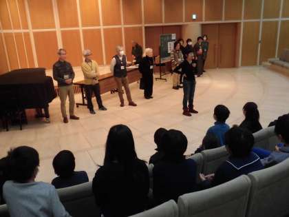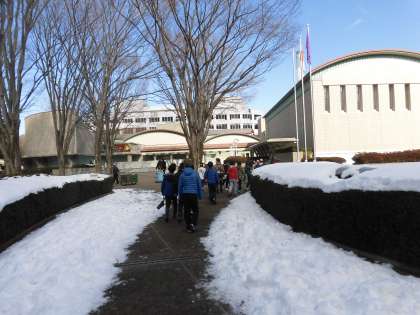 1月26日、雪がまだたくさん残る寒い日、4年生の子供たちが世田谷美術館に鑑賞教室に出かけました。館内に入ると「よろしくお願いします。」のあいさつをしました。今日は、5〜6名の子供たちに一人の案内の方がついてくださいます。世田谷美術館の貴重な作品を説明してくださ方々です。