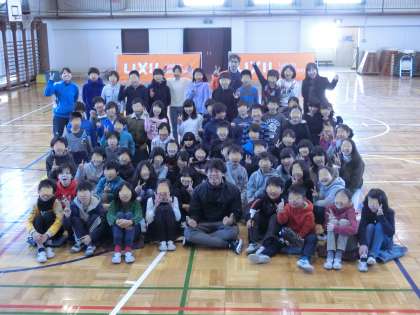 授業の最後にみんなで写真を撮りました。思い出のひとこまです。たくさんのことを教えていただいた佐藤圭太選手とスタッフの皆様に、心を込めてお礼を伝えました。