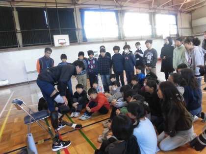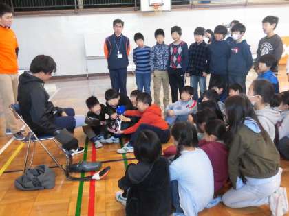 2月8日、学校公開初日、5年生の子供たちが義足を体験する学習を行いました。特別ゲストティーチャーとして佐藤圭太選手をお迎えしました。佐藤圭太選手は陸上で大活躍されているアスリートです。2016年、リオパラリンピックの400mリレーで銅メダルを獲得。2017年、世界パラ陸上競技選手権大会400mリレー銅メダル、そのほかにもアジアパラ競技大会 100m 、 200m 、400mリレー金メダルの三冠等で活躍されています。最初の1時間はクラスごとに、義足について教えていただきました。子供たちはとても近い距離でお話をうかがうことができ、心いっぱいで感じる時間になりました。義足を触らせていただくこともできました。重さに驚く子供たち。子供たちの真剣な表情から、深い学びを感じました。