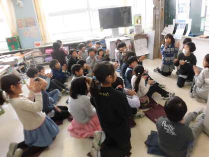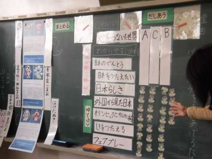 あいさつ運動をがんばっているときに、3年生の子供たちが学校の校章の中に「まがたま」があることを発見しました。オリンピック・パラリンピックマスコットにも「まがたま」がデザインされているものがあり、その共通性を発表していました。子供たちの意見には選んだ「理由」がたくさん込められていました。「日本らしさ」「日本の伝統」「四季を伝える」「フェアプレイ」などを大切にしている子供たち。子供たちが真剣にオリンピック・パラリンピックに参加しようとする気持ちが伝わってきました。自分の気持ちや意見を伝えるときに理由を明らかにすることはとても大切なことです。一人一人の意見はみんな違います。でも、話し合いで一つの方向性を導いた後は、互いに拍手をおくり、決まったことを認め合いました。拍手をするこの瞬間、とてもあたたかな空気に包まれました。
