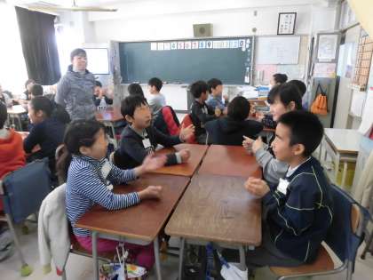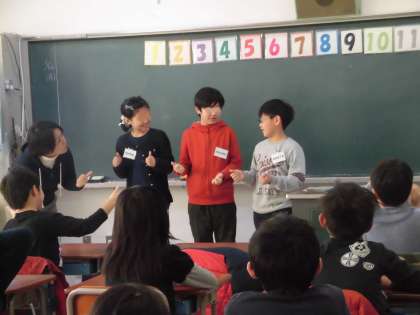 4年生が外国語活動で「世界の数」を学習しました。今日の外国語活動の先生は算数担当の教員です。最初に「マッチングゲーム」でいろいろな数の表現を学びました。デモンストレーションに立候補する子もたくさんいました。グループでの活動を通して、英語を使ってたくさんの数字に挑戦しました。みんな笑顔で英語の活動を楽しむことができました。