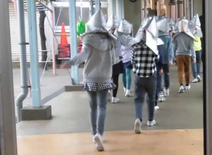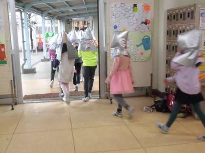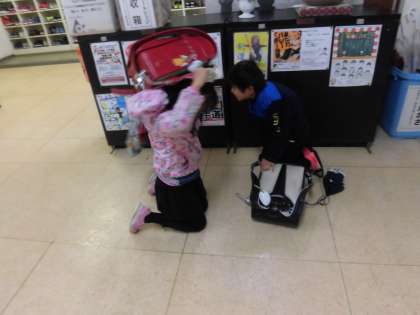 朝の時間の地震を想定した訓練であったため、昇降口で大きな揺れに遭遇する子もいました。いつもと異なる状況でも自分で考えて行動することができました。ランドセルで頭を守ろうとした行動、とても立派でした。その後、先生の指示で体育館に避難しました。
