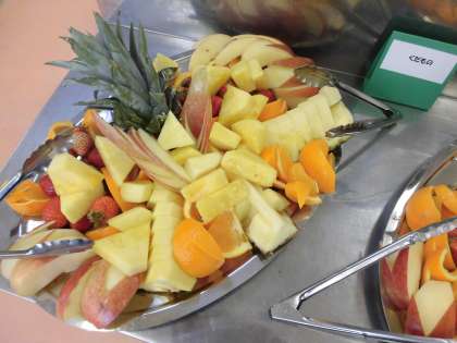 卒業まで9日間となった3月12日、6年生の卒業をお祝いして、給食室から「バイキング給食」のプレゼントがありました。給食室では、通常のメニューに加えフル回転で子供たちの好きなメニューをたくさん調理してくださいました。朝の6時30分から調理がスタートしたのです。6年生も「おいしそう!」とうれしそうです。見てください。ほんとうに豪華なバイキングになりました。