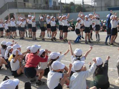 全身で喜びを表現する子供たちです。