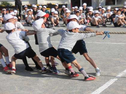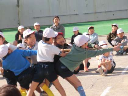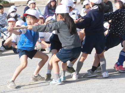 みんな精一杯なわを引っ張ります。応援も一生懸命です。校庭が子供たちの活気でいっぱいになりました。
