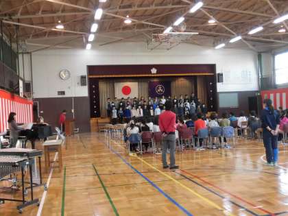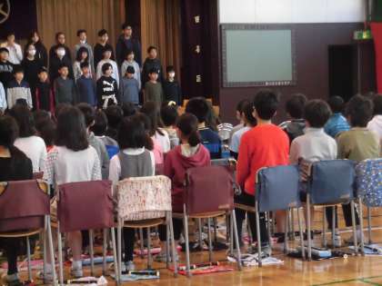 卒業式まで残すところ7日の登校日となりました。ぐんと春めいてきて、暖かく穏やかな日が続いています。今日は、5・6年生が一緒に卒業式の練習を行いました。6年生の心が伝わってきます。5年生も姿勢を正して練習に臨んでいます。