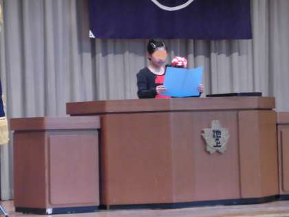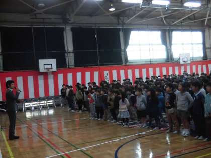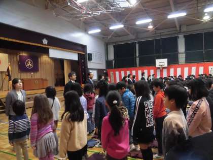 平成29年度の修了式を行いました。今日をもって1年間の学びが修了します。1年間を振り返ってがんばったことや次年度の目標を4年生の代表児童が発表しました。生活指導の担当教員から、「規則正しい生活を送ることの大切さ」「ゲームやスマートフォンを夜遅くまでやることの危険性や、様々な情報を適切に扱うことの大切さ」「どんな時も相手の気持ちを思いやることの大切さ」「困ったことがあったら春休みでもいつでも学校に相談にくること、先生たちが必ず対応するので安心てほしいこと」などを子供たちに伝えました。