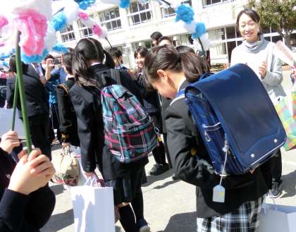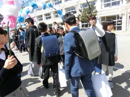 6年間の思い出のランドセルで登校した卒業生が何人かいました。入学のころに比べると小さく感じるランドセルとも卒業です。思い出のランドセル。共に過ごしたランドセルを大切にしようとする子供たちの思いをうれしく受け止めました。6年生の笑顔が青い空の下で輝きます。6年生、これまで学校のリーダーとして支えてくれてありがとう!