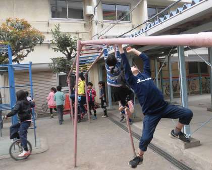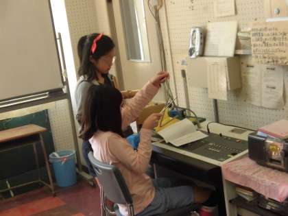 進級してから1週間。子供たちは元気に外遊びをしています。委員会活動に力を入れている高学年の活躍もたくさん見かけます。写真は放送委員会の様子です。