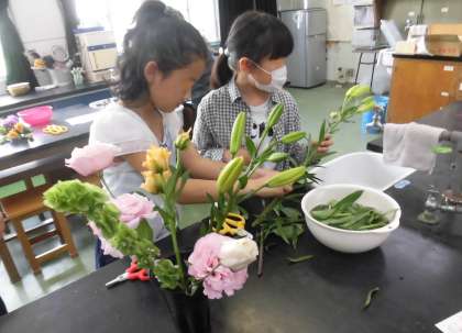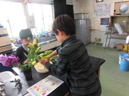 高さや横の広がりをイメージしながらみんな真剣に4月の花を生けていました。