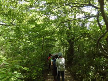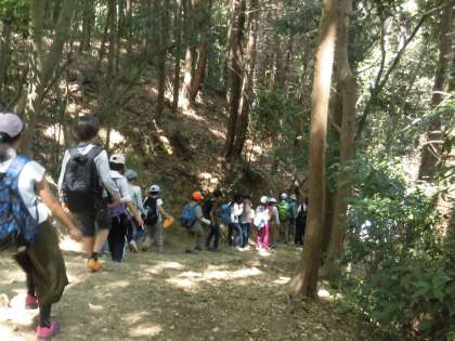 お昼をすませた後は下山です。高尾山の稲荷山コースを下りました。登りよりも道が険しく、一歩一歩かみしめながらも山の自然を体いっぱいに感じました。緑の若葉を豊かに感じる子、鳥のさえずりに耳を傾ける子、木の根っこに驚きを感じる子・・・自然のすばらしさにふれるひとときになりました。