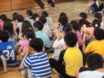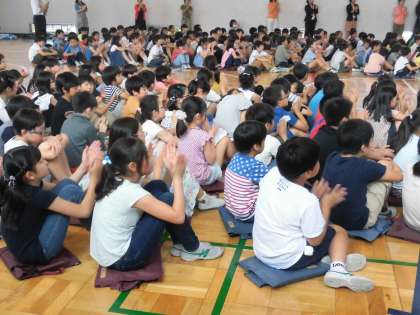 先生方のお話に聞き入る子供たちの真剣な表情が印象的でした。大きな拍手で感謝の気持ちも伝えることができました。