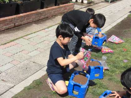 2年生が生活科の授業を行っていました。トマトの種まきです。小さな小さなトマトの種を大切に扱いながら、種まきに取り組みました。毎年苗を購入して育てていますが、今年度の2年生は種からトマトの成長を見守ります。種からの栽培は難しいですが、命の重みを感じる良い機会になりそうです。小さな小さな種・・・大きくなるといいなあと友達と話す子供たちを見ながら、うれしい気持ちになりました。
