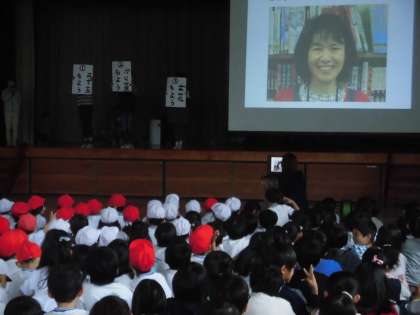 8名の先生、主事の皆さんが登場しました。「よろしくお願いします」の心がこもったとてもすてきな集会になりました。