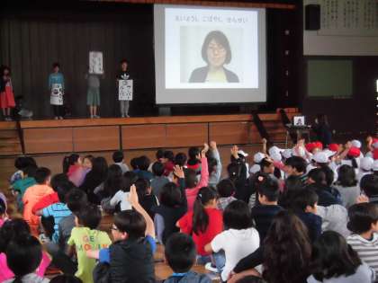 この4月より池之上小学校でご指導いただいている先生や主事の皆さんの紹介をしながら、みんなでクイズを楽しむ集会になりました。この日を迎えるまでに、インタビューをしたり様々な準備をしたりと、集会委員会の子供たちのがんばりがすばらしかったです。当日の運営も立派でした。