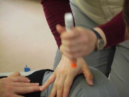 エピペンを使う練習も行いました。実際に練習することで迅速な対応をめざします。