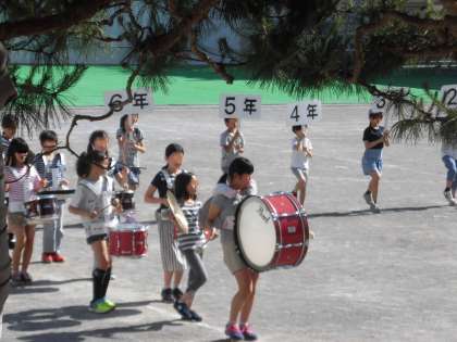 写真は応援団・プラカード係・鼓笛隊・放送係の活動の様子です。