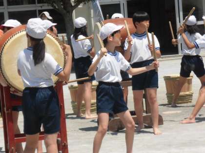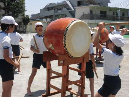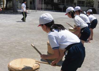 4年生の八木節を支える力強い和太鼓をたたくのは6年生の代表児童です。自分たちの演技練習や係の仕事をこなしながら休み時間の練習を欠かすことのない6年生。4年生の堂々とした踊りを一層引き立ててくれます。今日の練習の最後に4年生が大きな声で「ありがとうございました」のお礼を伝えました。4年生の八木節と6年生の応援太鼓は池之上小学校運動会の伝統です。
