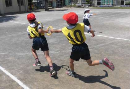 低学年リレーの練習たちが集まってきました。集合もとても早く、あっという間に自分たちで整列するなど、どんな時も全速力で取り組んでいます。この日の練習は「バトンパス」が中心でした。日に日に上達していく姿に驚くばかりです。