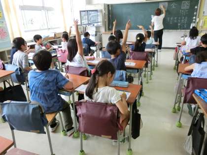 3年生は漢字の練習に取り組んでいました。一人一人が漢字をていねいに書きながら練習を進めます。指を使って空書きをして学びを確かなものにしていました。