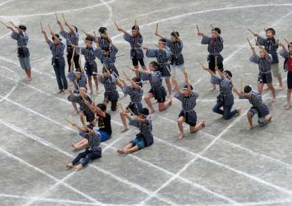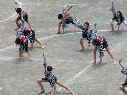 池之上小学校の30年以上の伝統を引き継ぎ、4年生が池之上八木節を踊ります。みんなおそろいのはっぴ姿に豆絞り、6年生の力強い和太鼓と樽太鼓の応援を得て、60名で一生懸命踊る4年生に、どうぞあたたかいご声援をお願いします。