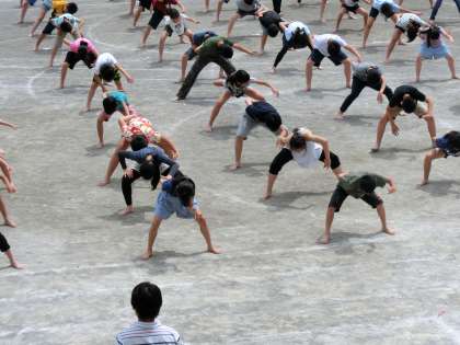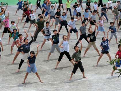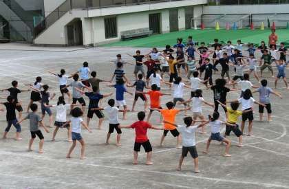 今年の高学年は、ソーラン節を力強く舞い踊ります。全身を使って大きく表現できるよう、毎回汗だくになりながらたくさん練習を重ねました。大きなウェーブも見どころです。127名が心を一つにして、迫力のある演技を目指します。