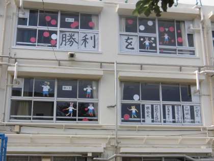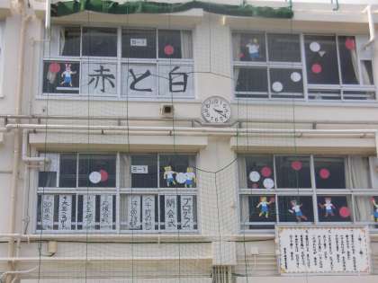 今年の運動会スローガンも飾られました。「さいごまで 勝利をめざせ 赤と白」このスローガンのように最後まで一生懸命にがんばってほしいと願っています。