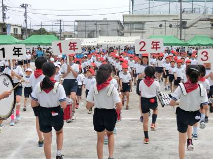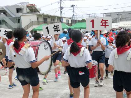 プラカード係の誘導で閉会式が始まりました。5・6年生のプラカード係は1年から6年生までの様々な位置を覚え、プログラムごとに違う立ち位置に誘導する大切な役割です。今年度から閉会式の行進を鼓笛隊の演奏で行うことにしました。鼓笛隊の子供たちのがんばりもすばらしかったです。毎朝の練習を積み重ねてきた自信とやり遂げた誇らしさが後ろ姿から伝わってきました。