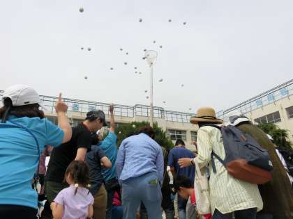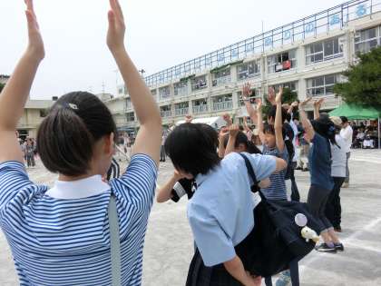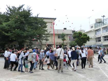 PTA・同窓会・地域の皆様による競技も行われました。北沢地区と代沢地区に分かれて玉入れに挑戦です。この玉入れ、目指すは、天高く・・・玉がなかなか届きません。本校を卒業した中学生もたく参加し、楽しい時間を過ごすことができました。