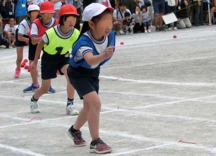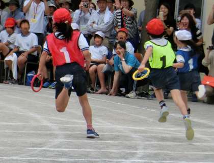 1年生から3年生でチームを編制する低学年リレーです。1・2年生は半周してバトンを渡します。3年生は1周を走ります。休み時間の練習もよくがんばりました。