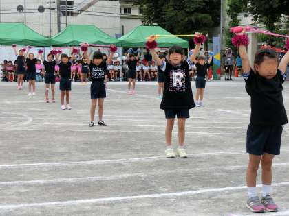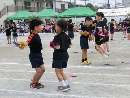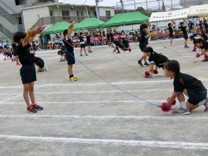 黒のTシャツに色とりどりのなわとびが映えます。一生懸命に練習してきた成果を見せる2年生。自信に満ちあふれた誇らしげな表情がとてもすてきでした。たくさん練習したからこそ得られる笑顔。すてきです。