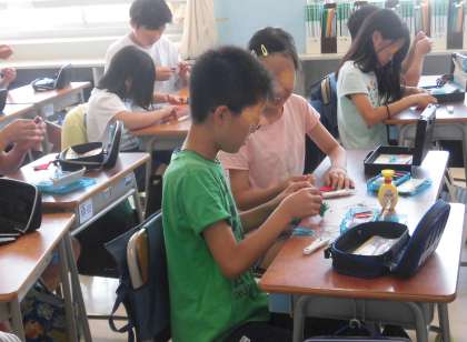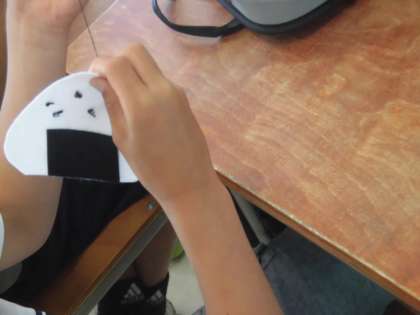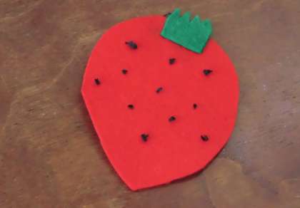 おにぎりとイチゴのかわいらしい作品もできあがりました。玉結びを利用して、ゴマと種を表しています。