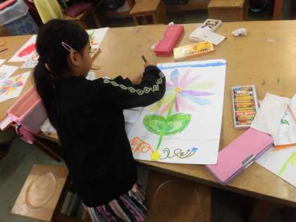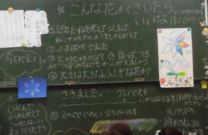 2年生の図工の様子です。「こんな花がさいたらいいな」という活動を行っていました。どの作品もダイナミックで色鮮やかです。みんなの作品を並べたら、すてきなすてきなお花畑になりそうで、心わくわくします。