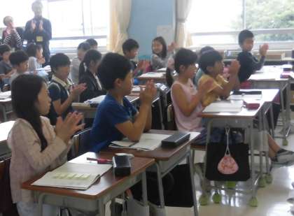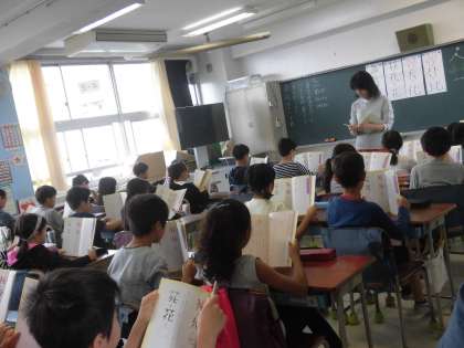 4年生の様子です。日本語・国語・社会・理科の授業を行いました。落語の「寿限無」に挑戦している場面もありました。友達への努力に拍手もたくさん。互いに認め合う姿がすてきです。
