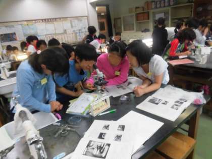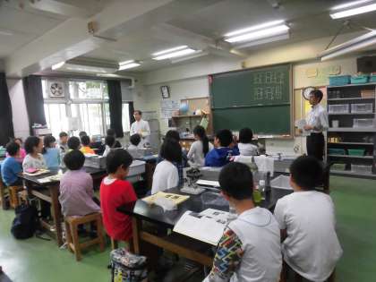 今年度、池之上小学校は小学校科学センターの拠点校となりました。子供たちが実験や観察を通して科学に対する興味関心を高めてほしいというねがいのもと実施している区の取り組みです。池之上小学校の子供たちだけでなく、近隣の学校の5・6年生もたくさん参加しています。写真は6月16日に行われた第1回科学センターの様子です。花粉や水中の生物を顕微鏡で観察しました。初めて会った他校の友達とすぐに打ち解けて活動する子供たちを見て可能性の大きさを感じました。みんなで協力して1年間の活動を進めてほしいと願っています。