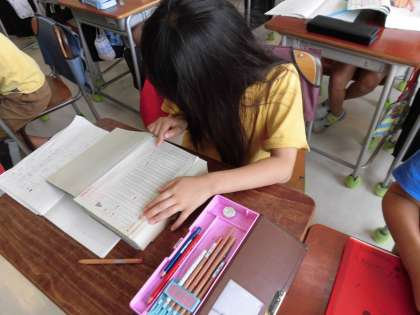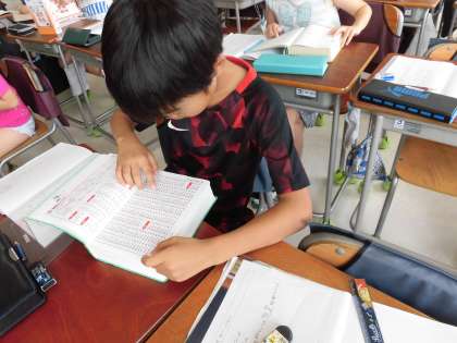 漢字字典を指さしながら漢字を探している子がたくさんいました。課題の漢字が見つかるとみんなうれしそうにしています。