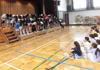 6月の音楽朝会の様子です。5年生が歌を披露しました。「すてきな一歩」(長井理佳作詞 長谷部匡俊作曲)というすてきな歌です。