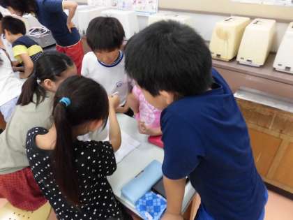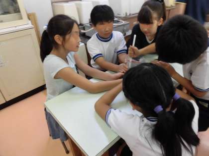 実験がスタートしました。一人一人に役割が与えられています。その役割を責任をもって果たす4年生。助け合う姿もたくさん見ることができました。