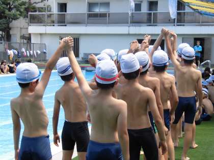 5・6年生のプール開きの様子です。バディーやルールの確認もしっかり行いました。どの学年も大切にしているいけ「約束」を守る力・・・水の事故から身を守るためにも大切な力です。プールではたくさんのルールがあります。ルールを守って安全第一。みんなで励まし合い、一人一人が目標に向かって努力する体育の時間になることを願っています。