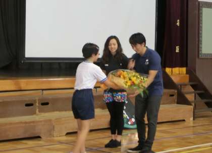 命の大切さについて考えることのできたすてきな授業になりました。最後に飯沼選手にお礼の言葉を伝えました。飯沼選手から子供たち全員に「自分の命も友達の命も、かけがえのないみんなの命を大切にしようという」メッセージをいただき、「いのちの教室」が閉じられました。1時間の授業の中に、私たちが大切していく宝物がたくさん詰まっていました。飯沼選手、ありがとうございました。