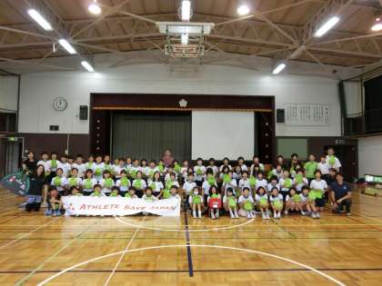 AEDの授業が終わると、みんなで記念の写真も撮らせていただきました。みんなの笑顔が広がりました。