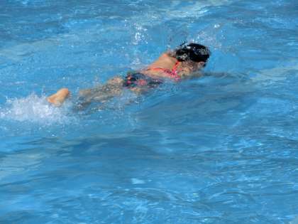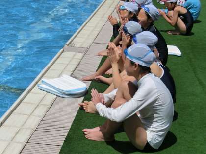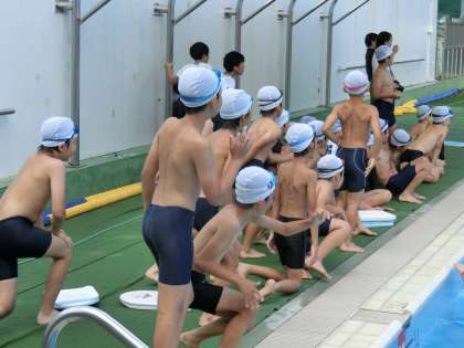授業の最後に、もう一度、松田選手の泳ぎを見せてくださいました。25メートルを8秒で泳いでしまう実力の持ち主。その速さに子供たちの驚きの声と拍手が止まりません。今週末には世界選手権出場のため海外を遠征する松田選手。ありがとうございました。