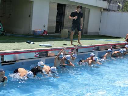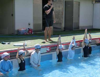 子供たちも「姿勢」に気をつけねがら「けのび」に挑戦しました。