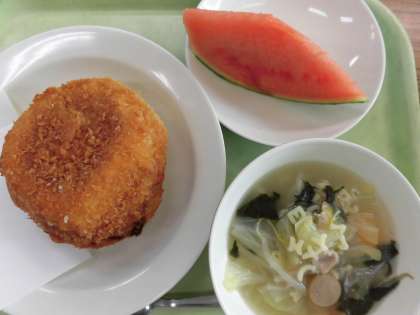 今日の給食は、手作りカレーパン・セレクトドリンク・ABCスープ・くだものです。