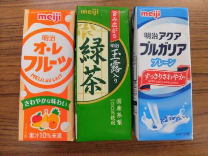 セレクトドリンクはフルーツオレ・ヨーグルトドリンク・緑茶の中から事前に選んでいます。