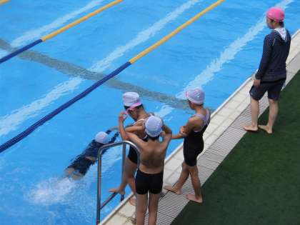 7月19日、3・4年生の水泳学習の様子です。1学期最後のプールの時間。今日は検定を行いました。「先生!合格しました。」「次の目標を決めました。」「苦しかったけど25メートル泳げました。」「今回の検定は受からなかったけれど、まだ夏休みも2学期もあります。頑張ります。」「残念だったけど練習続けます。」と子供たちが自分の思いを抱き、伝えてくれました。子供たちに私からも伝えました。「『どんな状況でも練習し続けようとする気持ち』『目標をまたつくり直した向上心』がすばらしい。みんながんばったね。」と。